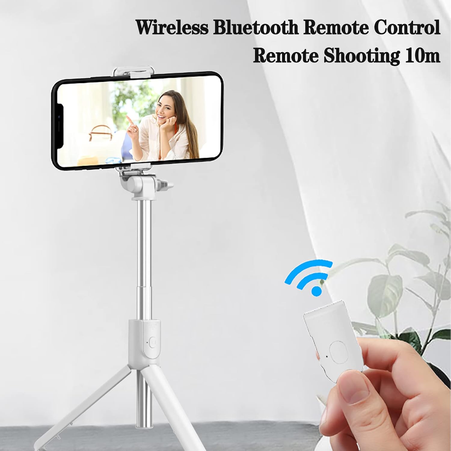 Selfie Stick Tripod Stand for Smartphone, Wireless Selfie Stick 4-in-1 Detachable with Reinforced Remote Control, Retractable-White